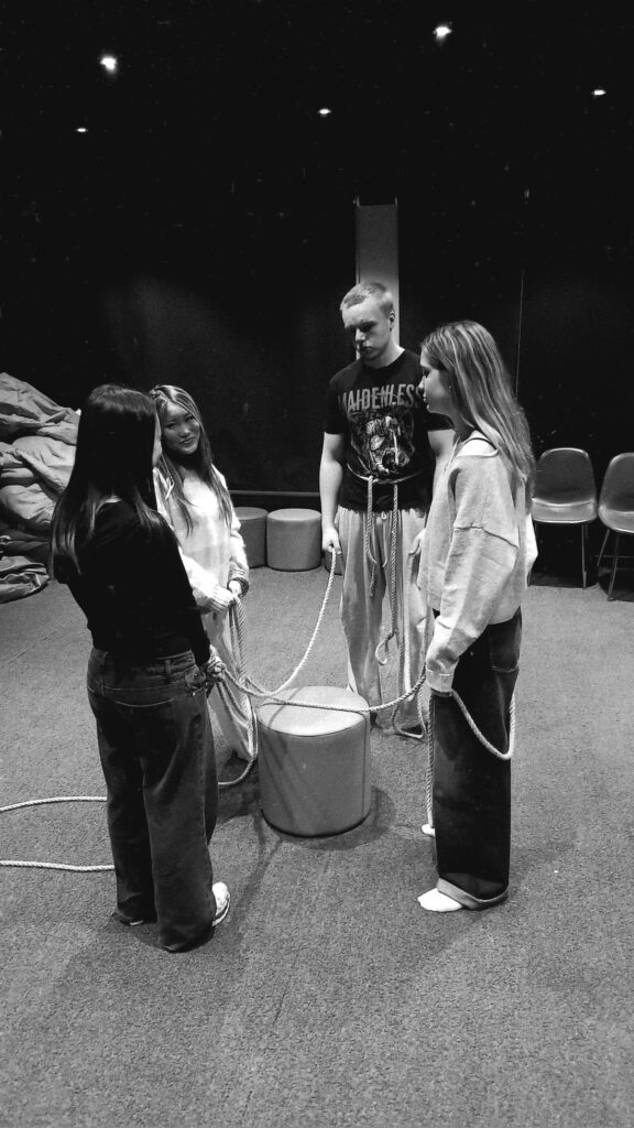 This lead to us experimenting with the use of rope, keeping everyone bound the entire performance